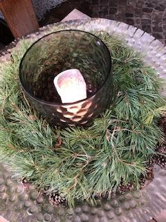 Mit auserwählten Grünsorten, wie zum Beispiel Föhre, Eucalyptus, Taxus, Olive, etc. stecken wir einen wunderschönen Kranz in eine Unterlage aus feuchter Steckmasse. Mit einem Windlicht in der Mitte und einem passenden Accessoire ergänzt, strahlt dieses Werkstück eine warme adventliche Stimmung aus. Als Ergänzung oder Alternative zum klassischen Adventskranz.