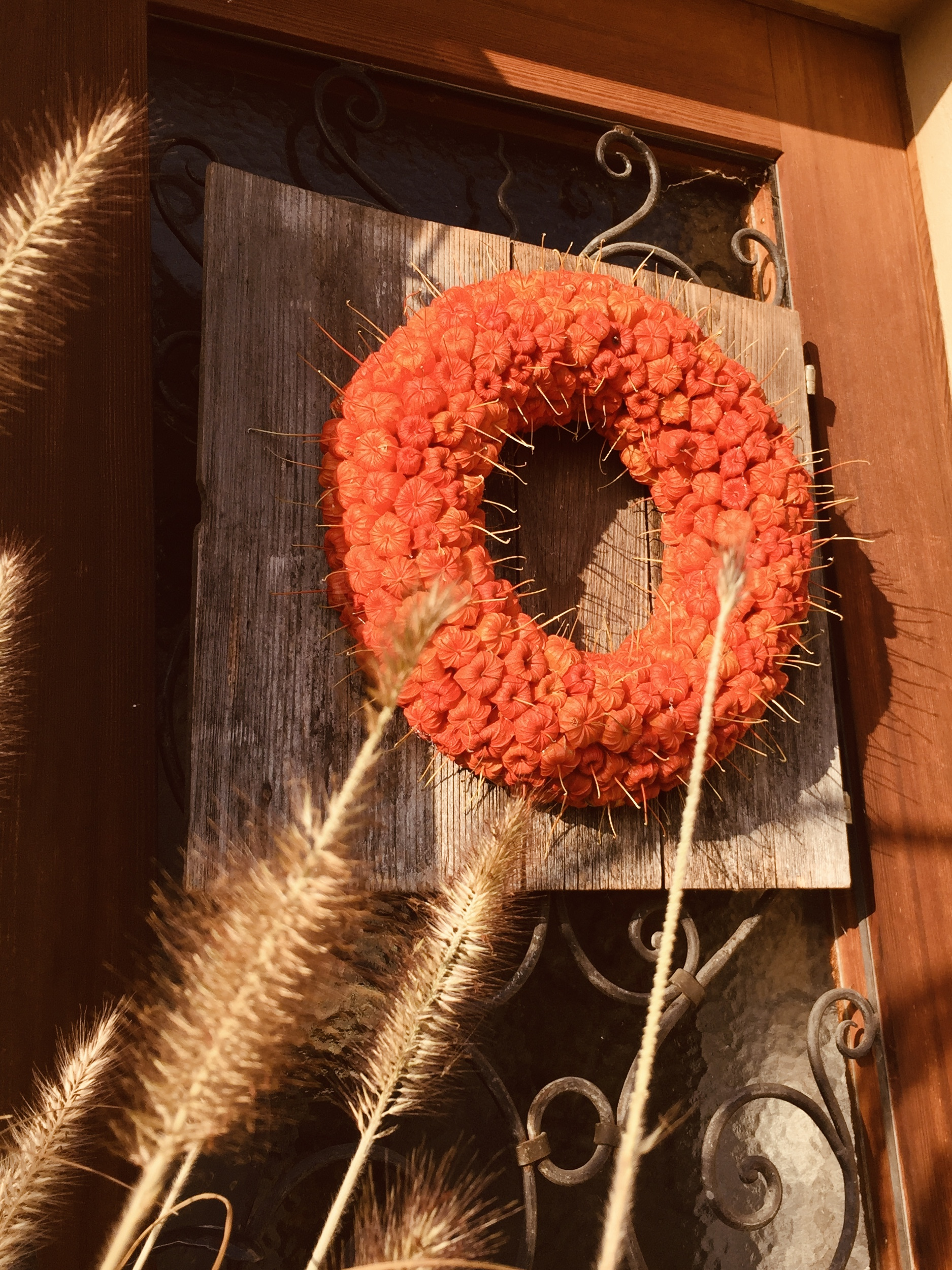 Aus den einzelnen Physalisfrüchten kleben wir einen Kranz. Ein knalliger Farbtupfer an der Türe oder mit einem Windlicht für wohlige Atmosphäre in der Stube.